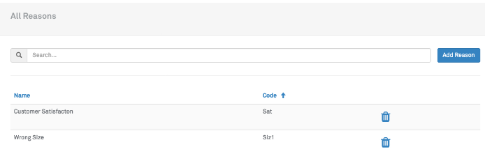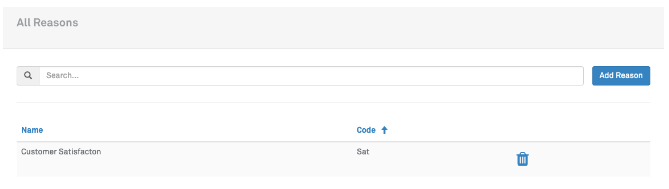 To delete a Reason, click the trash can icon.