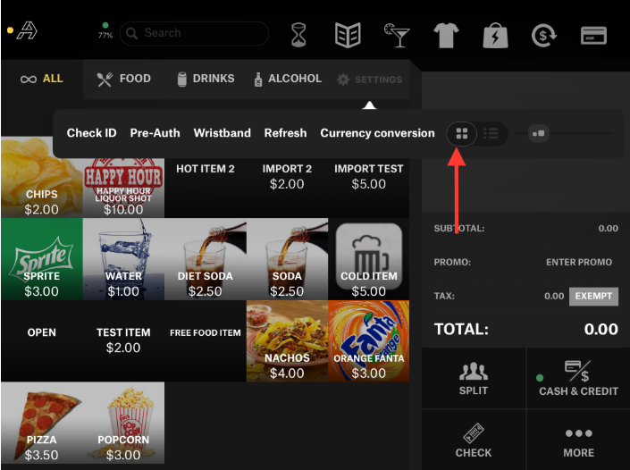 - Select the Grid button (four squares) or List button (three lines) to change the menu format.
