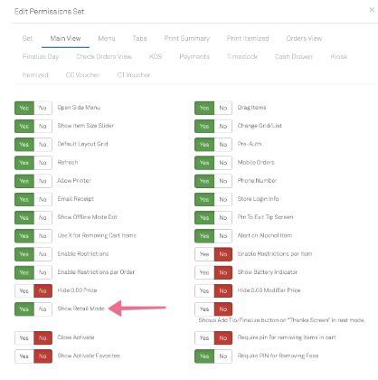 Note: Retail Mode is optional and can be enabled via Show Retail Mode in Permissions Sets on the Main View tab.