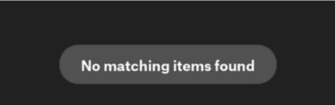If there are no items matching the search, the message 'No matching items found' will appear.