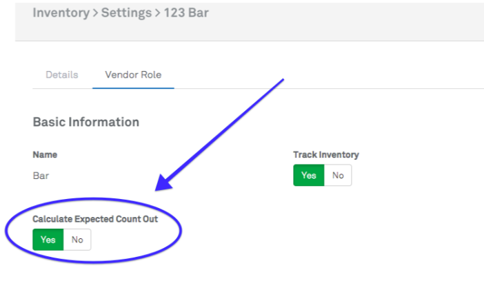 - Under the Vendor Role tab, turn Calculate Expected Count Out to 'Yes.'
