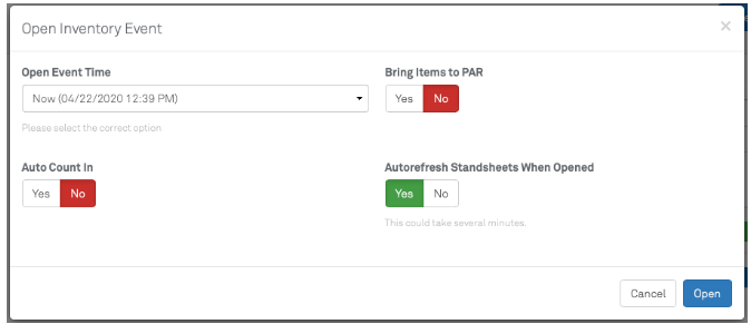 Note: An inventory event can only be closed when all vendor Standsheets are closed.