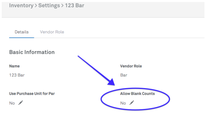 - Under the Details page, select the pencil next to 'Allow Blank Counts.'