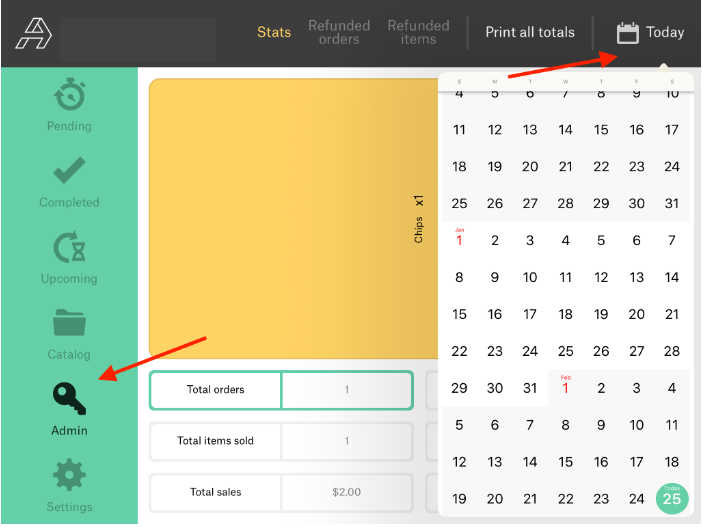 The Admin tab in the KDS app gives you a brief overview of the event's sales in real-time. For more detailed reports, please refer to the Reports feature in Connect.