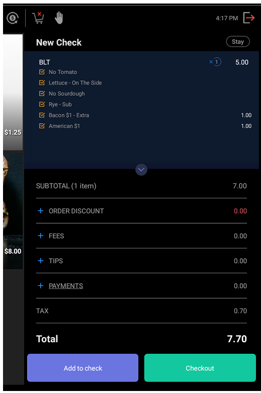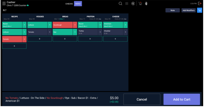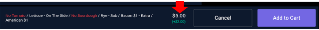 The modified item will now appear in the Cart along with the modifications.