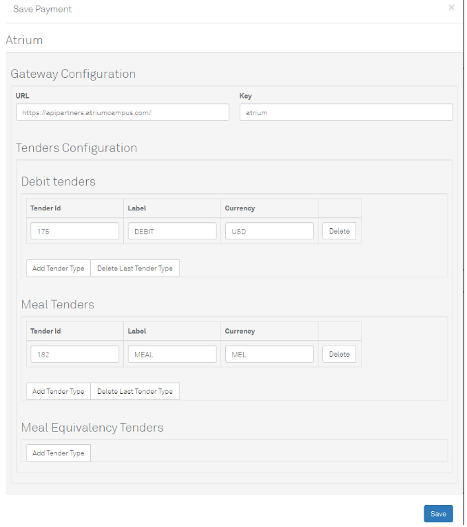 - Tender ID: Provided by Atrium, these are the IDs for each type of tender used in transactions.