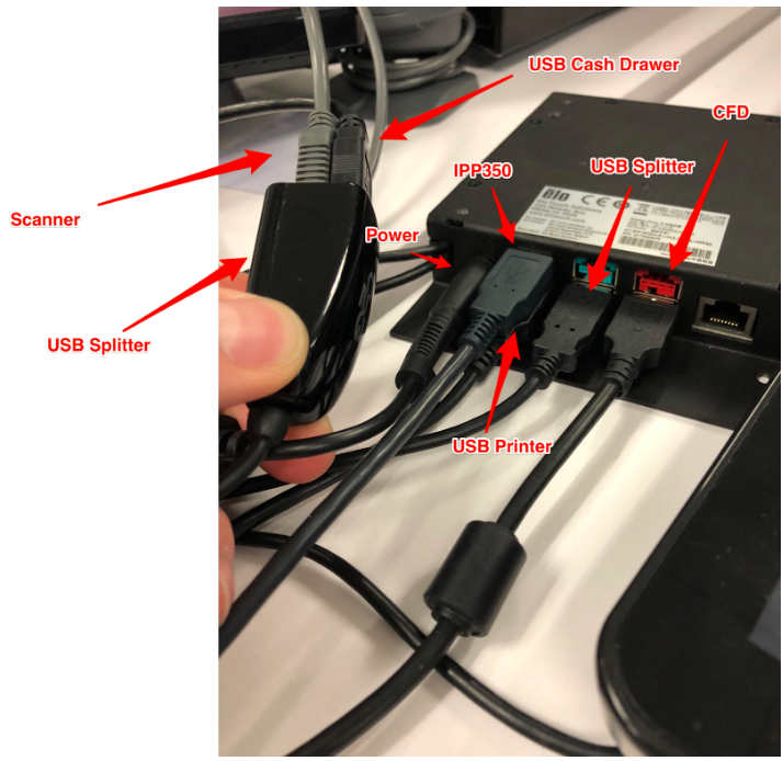 - If a USB Splitter is required, install the USB Splitter into the Expansion Board. Upon plugging in, take both cables (the USB from the USB Cash Drawer and the USB B end from the Printer to the Cash Drawer into the splitter).