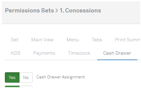 - Navigate to Options > Permissions Sets > Cash Drawer to enable.