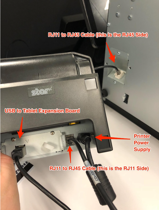 - The USB Cash drawer will be plugged from the bottom of the cash drawer to the back of the expansion board.