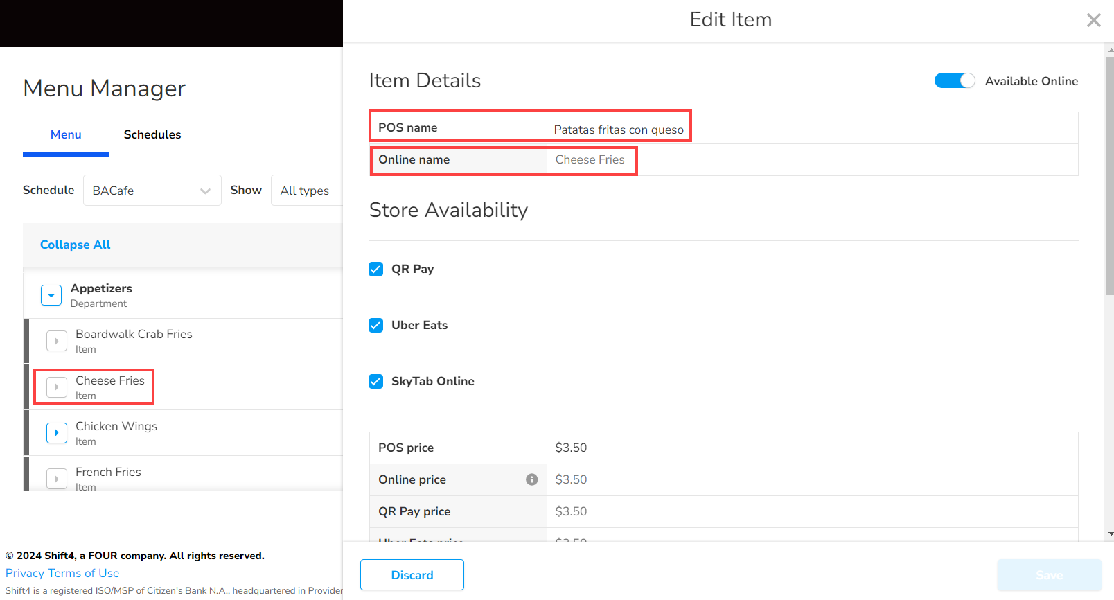 Description: Learn how to display a different menu item name on SkyTab Online than on the POS using Lighthouse Business Manager (LBM).