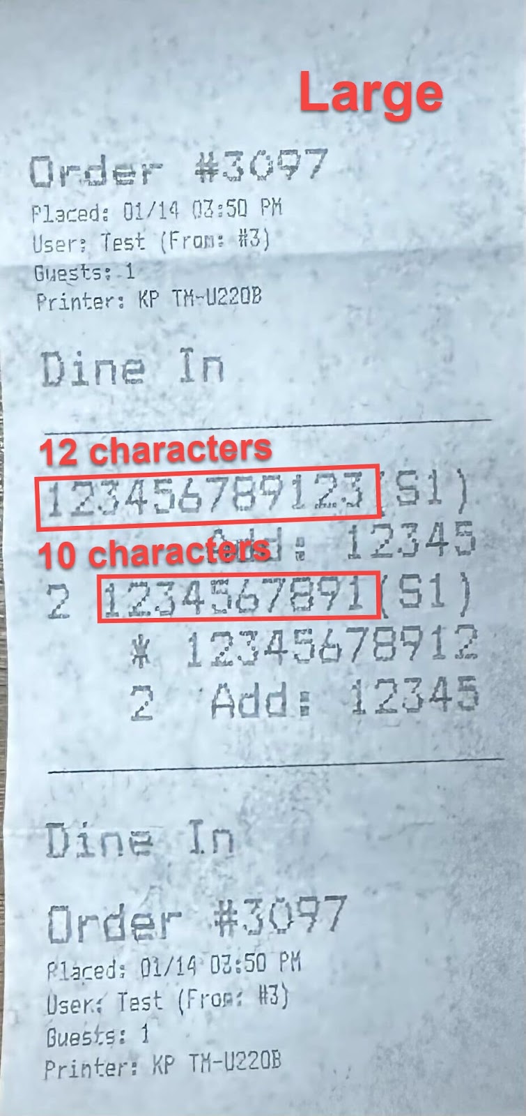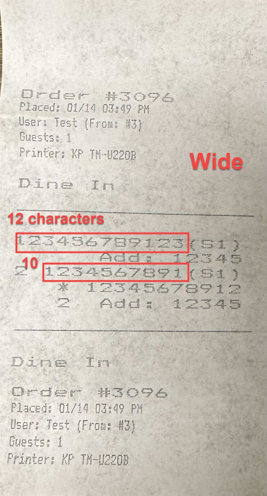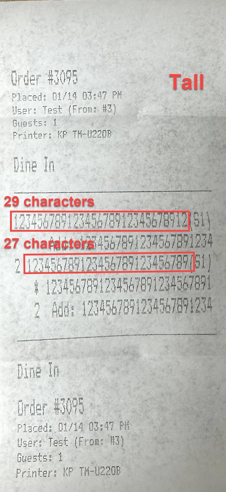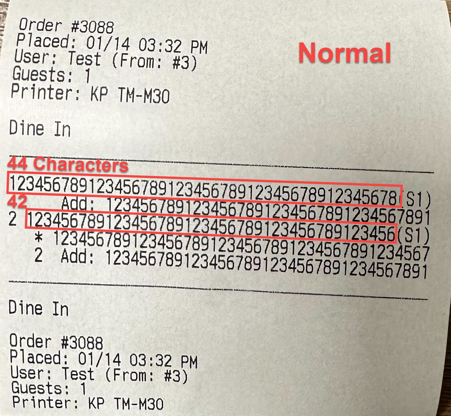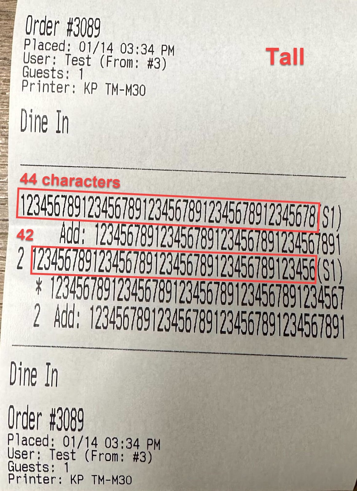 Description: Learn the Kitchen/Receipt Printer character amount limitations with different font settings on SkyTab POS software.