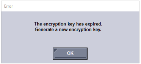 When trying to start new checks in operations, "Error: The encryption key has expired. Generate a new encryption key." is received.