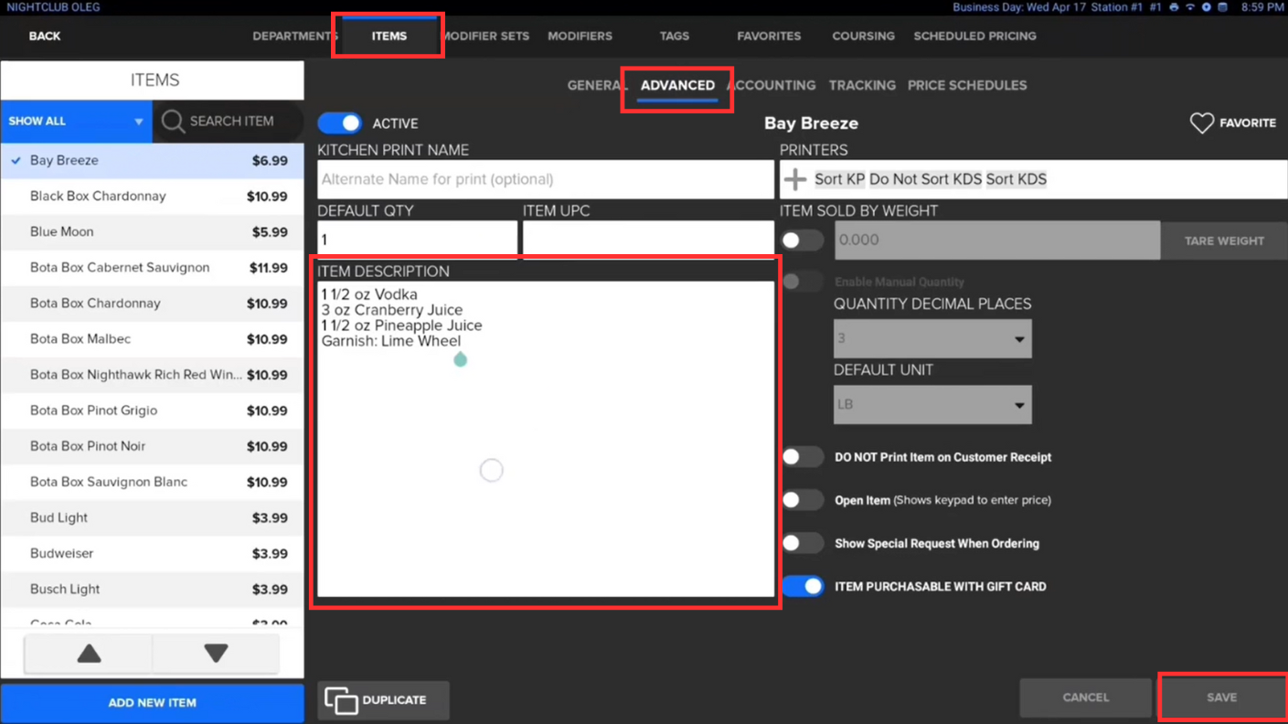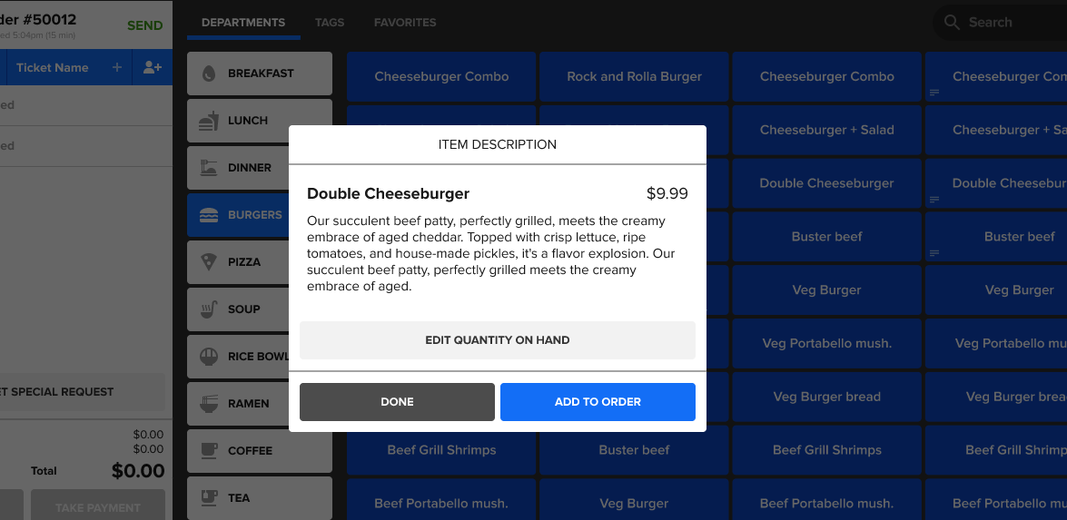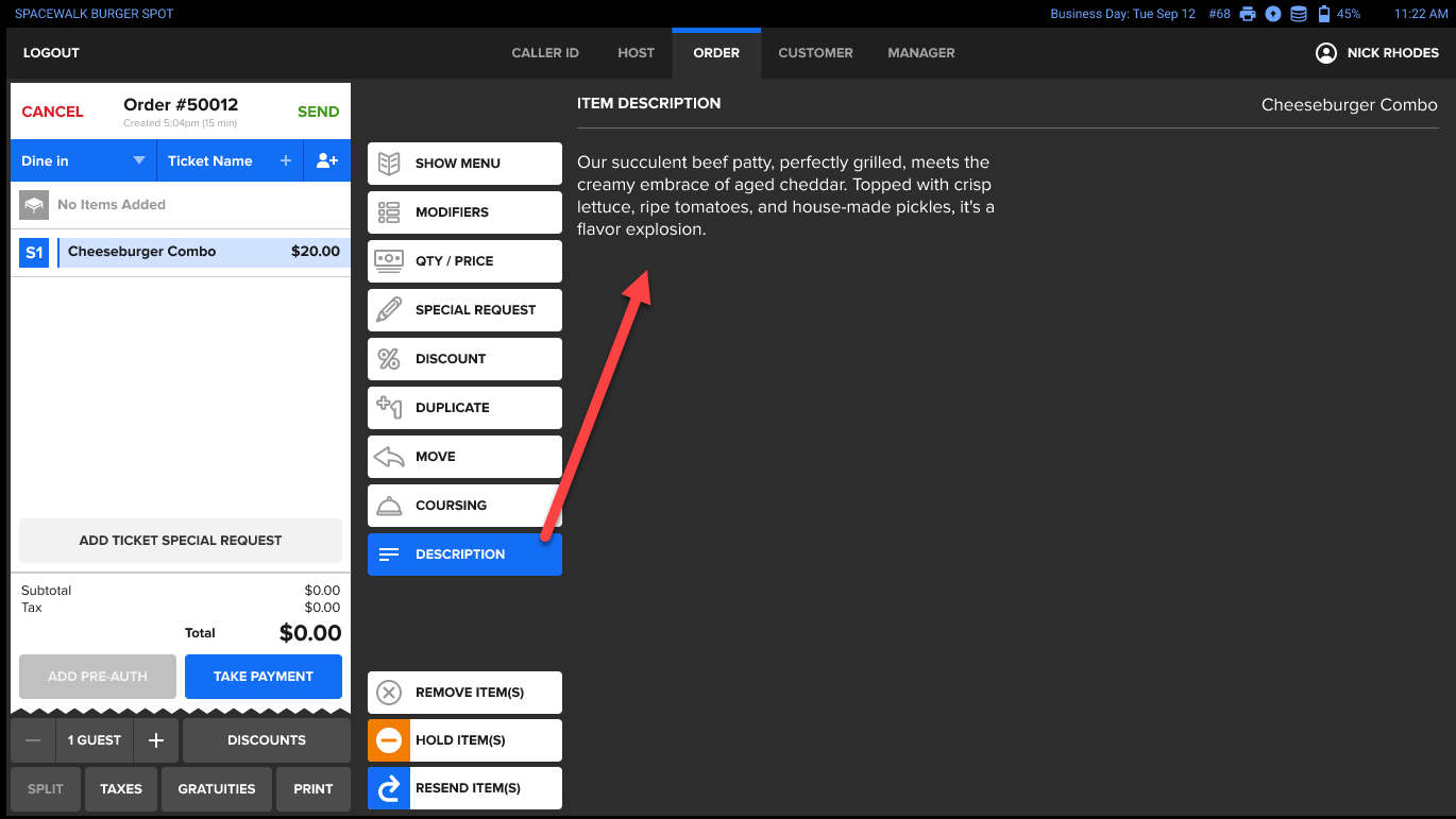 Description: Item descriptions can display details such as recipe reminders, dish descriptions, allergens, or other information to share with customers. Learn how to add item descriptions, which you can view on the Order Entry screen before or after the item has been added to the ticket.