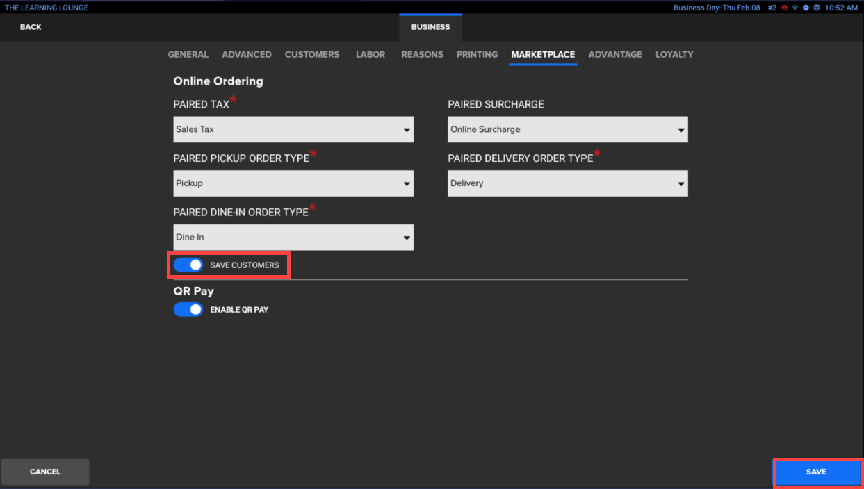 - Toggle "Save Customers" to On (blue) and tap Save.