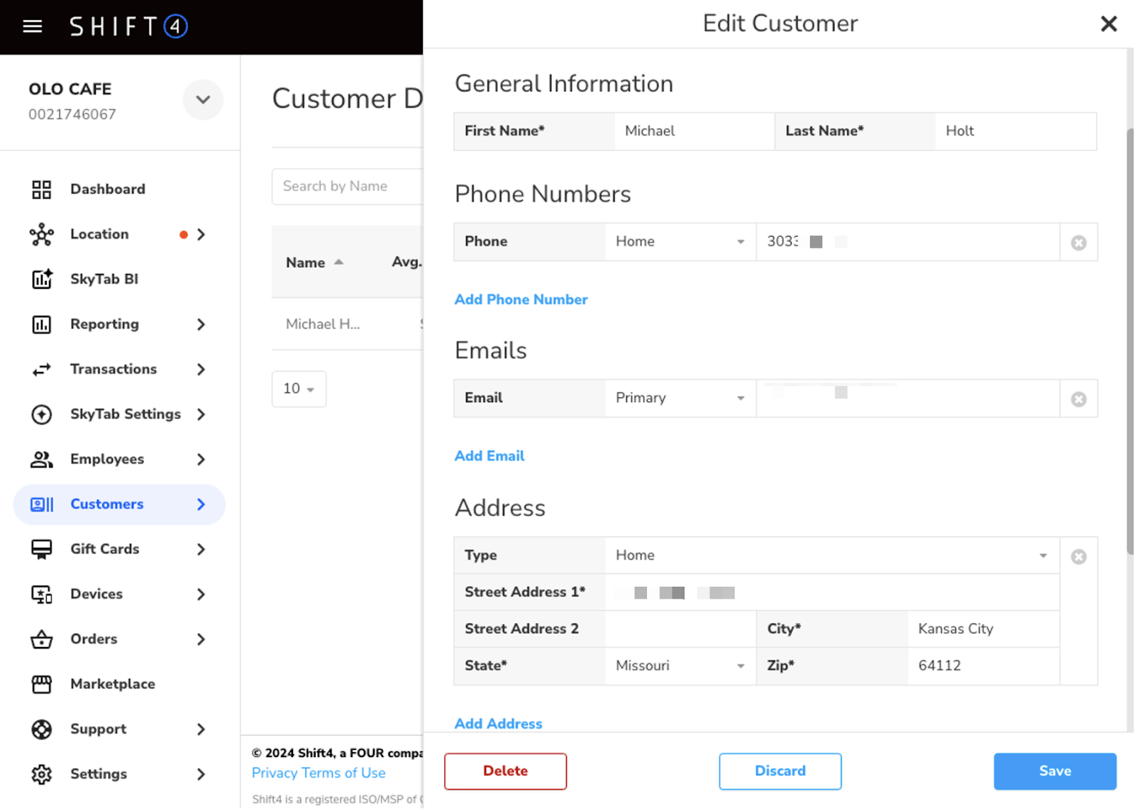 If a customer record is deleted and an OLO order is placed later, that customer record will be restored in the system.