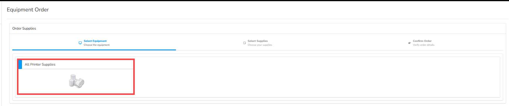- On the Equipment Order page, select All Printer Supplies.