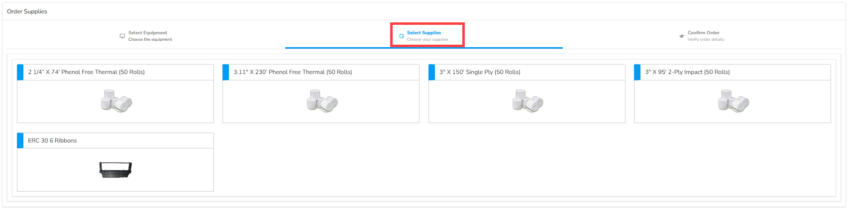- On the Equipment Order page, select the hardware you want to order supplies for.