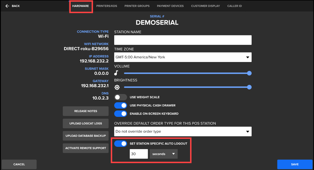 Description: Learn how to enable the Auto Logout feature with customizable timeout settings to ensure security on devices by quickly logging out users from the system. This feature serves dual purposes: it allows for a shorter auto logout timeout to enhance security in high-traffic stations while also enabling an extended timeout for stations in secure areas where frequent logins are unnecessary. Users can set the intended timeout duration, catering to scenarios where servers need to quickly input multiple orders without the hassle of frequent logins.