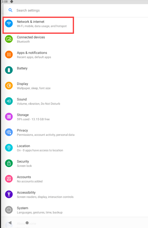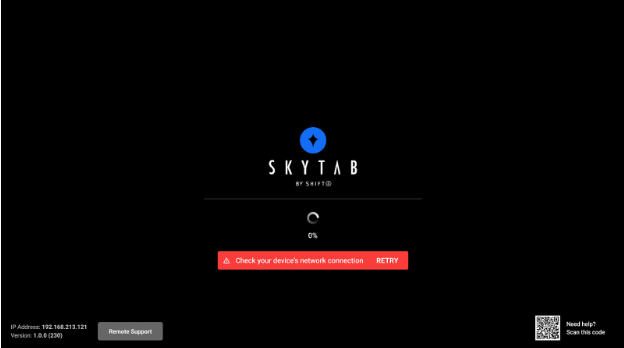 SkyTab KDS might alert if it cannot connect to the local network on startup. In the event this happens, you can tap RETRY in the error message to check again for a network connection. If you are unable to connect, you can navigate to the Admin settings and open the Android settings to view the current network settings and configuration.