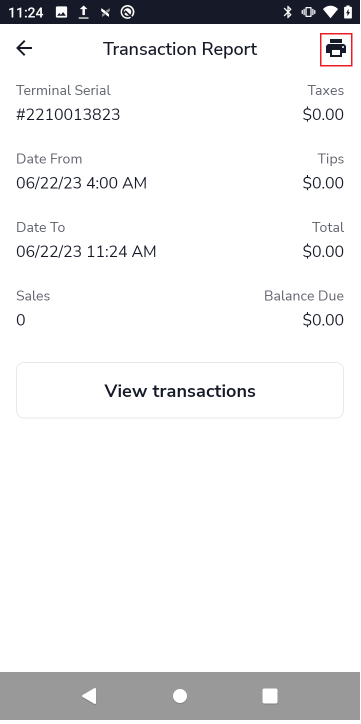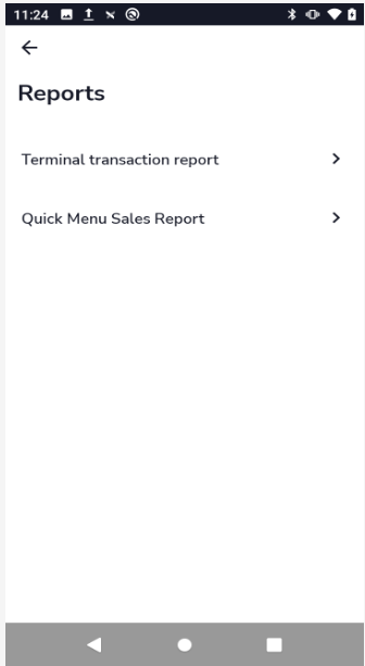 - You have two report options: the Terminal Transaction Report or the Quick Menu Sales Report. Select the report to view it.