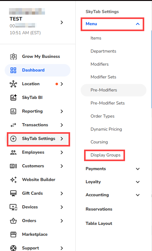 - Navigate to SkyTab Settings > Menu > Display Groups.