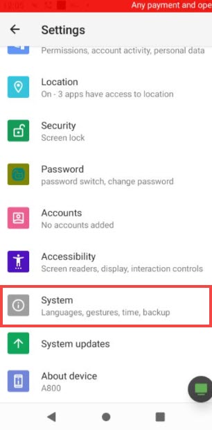 In Android Settings, select the System section.