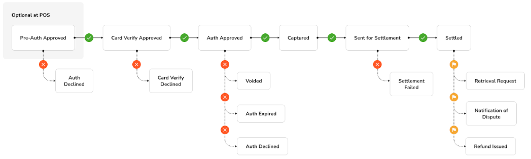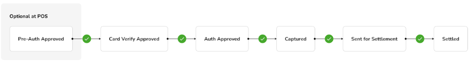| Settled | Received confirmation from Acquirer that the batch the transaction is in has been successfully processed. |