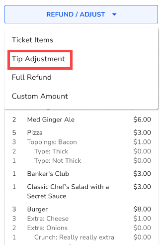 Post-settlement transactions adjustments (Refunds) are processed using the original payment method in a new transaction. The original Transaction and Ticket Tip amount determines the maximum refund amount. Additionally, refunds are exclusively issued back to the original form of payment.