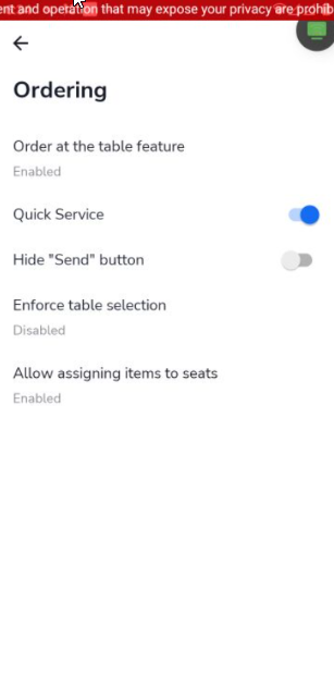 - Quick Service: when enabled, the SkyTab device will bypass table selection and party size.