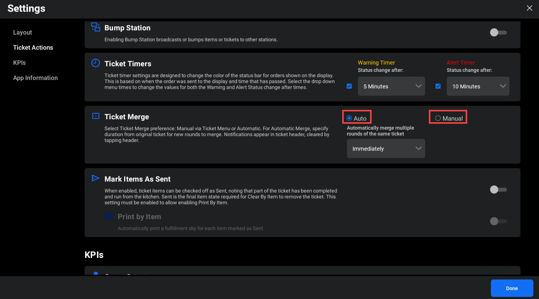 Description: Configure the merge feature on your KDS, which allows you to merge tickets manually or automatically based on predefined criteria.