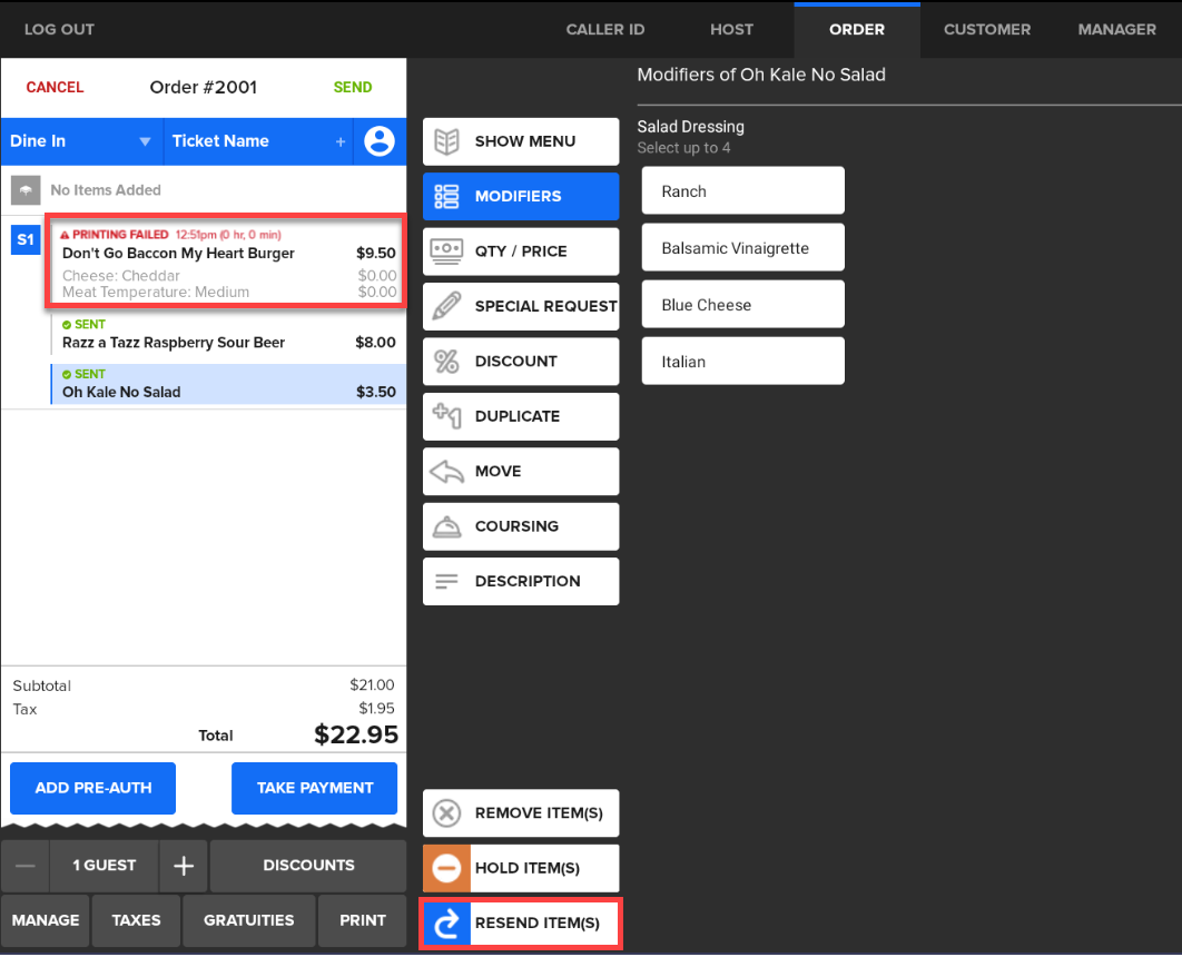 Description: Learn how to resend a ticket to your kitchen printer if printing fails or is due to printer issues.