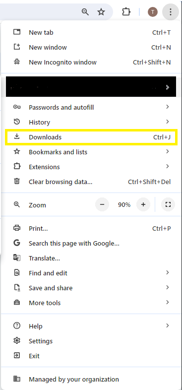 - The Ctrl+J keys can be used to access downloads in most browsers or by selecting the 3 vertical dots (ellipsis) in the upper-right corner of the browser and then Downloads.
