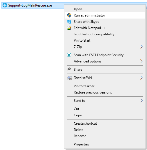 - Right-click the Support-LogMeInRescue icon and select Run as administrator.
