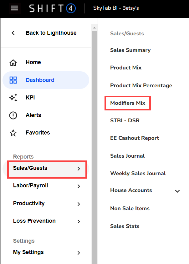 For exporting modifiers mix reports in SkyTab Business Intelligence, please visit the Export a Report From SkyTab Business Intelligence article.