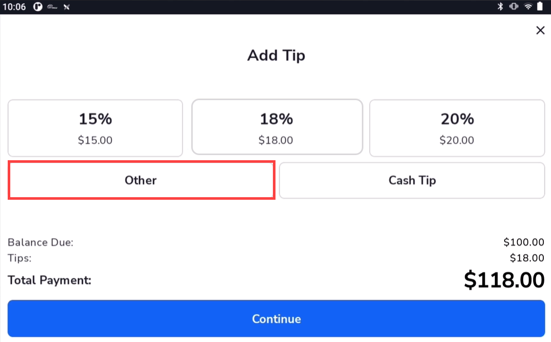 - Then select a tip option. We selected "Other" for this example to enter a custom tip.