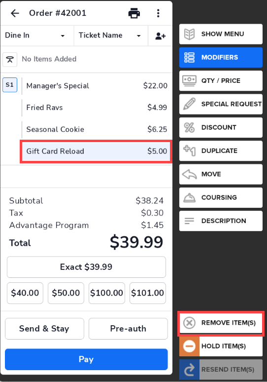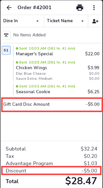 You can use a discount on a ticket to sell Gift Cards even if the ticket balance reaches $0.00. These instructions will describe the common ticket flow, including how to handle discounts on a Gift Card sale/load/reload, and how to handle the payment flow if the ticket balance reaches a zero value.