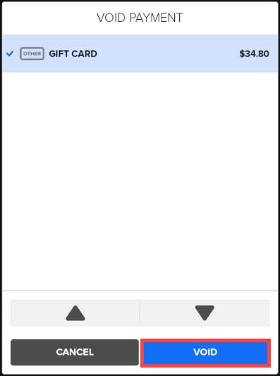 You can void Gift Cards from your tickets and from a payment; just note that if voided from a payment, it does not return that value to the card. Those funds are then lost. If the Gift Card is loaded with a value and then voided from the ticket, it will not gain that value until the sale has been completed.