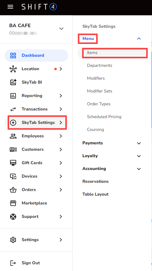 - Log into Lighthouse, and go to SkyTab Settings > Menu > Items.