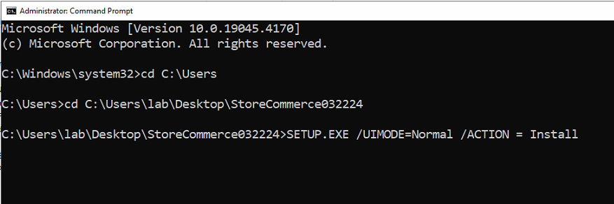 - With the Command Prompt opened as an Administrator, it should start you on the command line: C:\Windows\System32> you are going to want to change this so that we may access the file you installed previously. Type cd then copy with exact case sensitivity the download path that was used in step 3. For example, cd C:\Users\POSAdmin\Downloads; then add the name of the installation folder that was just extracted in step 4, so it should look like: