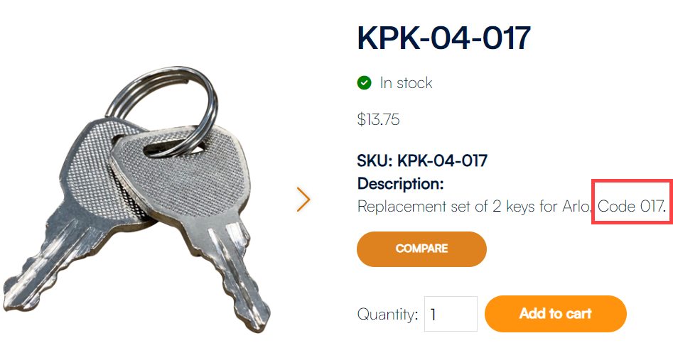 For example, if your key is labeled "017," you should order key 017.
