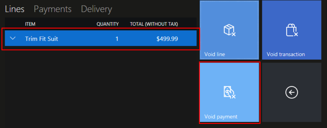 Important: Please note that Void line and Void transaction will only perform order processing operations and do not affect the actual payment for the order. - This will send a void request to the Shift4 Gateway for the transaction that was processed for this order.