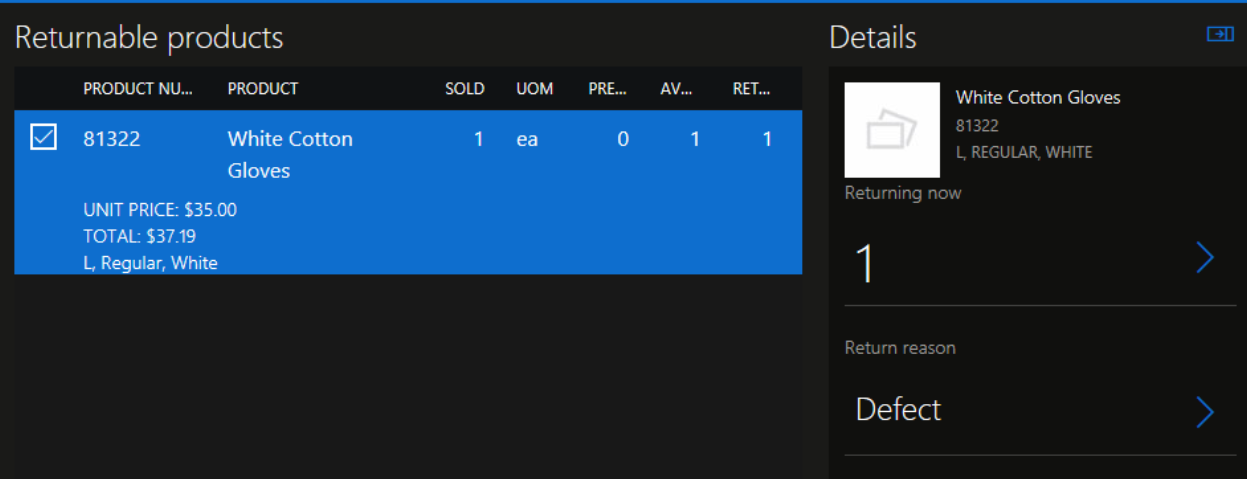 - From the Order Details screen, select Return.