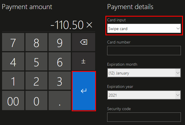 - Select Swipe card from the dropdown, then press Enter.