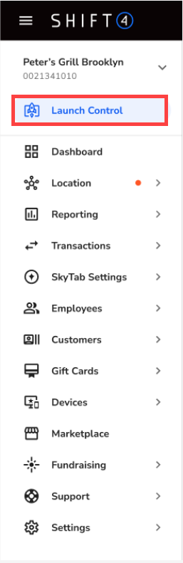 Shift4 Knowledge SkyTab SkyTab Lighthouse Business Manager Use and Operation Access Launch Control August 01, 2024 15:47 Updated Description: Learn how to access Launch Control. To access Launch Control: Log into Lighthouse Business Manager. Select Launch Control from the left navigation panel. Comments 0 comments Please sign in to leave a comment.