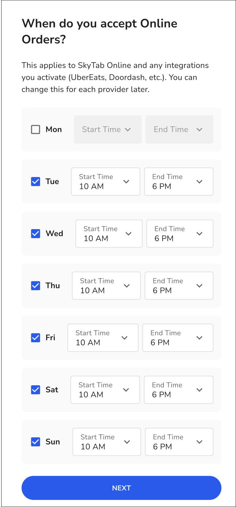 Setup: Easily link your existing menu and schedule to the “Integrations” module.