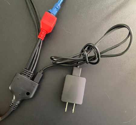 - Connect the Ethernet cable (RJ45) to the red connector on the device's cable.