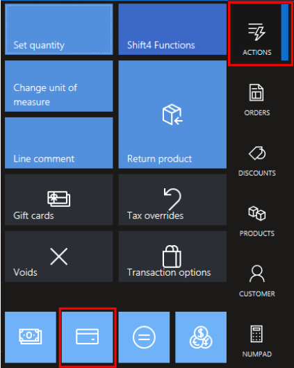 - Navigate to Actions and select the Credit card button.