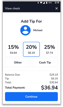 - The payment device will prompt the customer to enter a tip amount (tip prompt layout may differ depending on the device and integration you’re using).