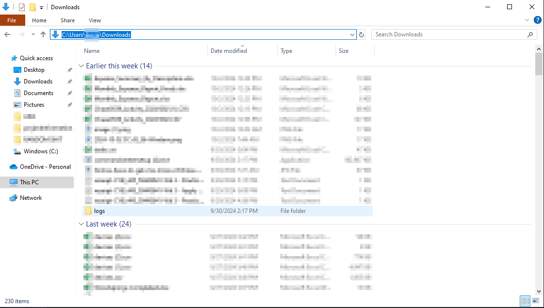 - The path will be C:\Users\YourUsername\Downloads\logs.