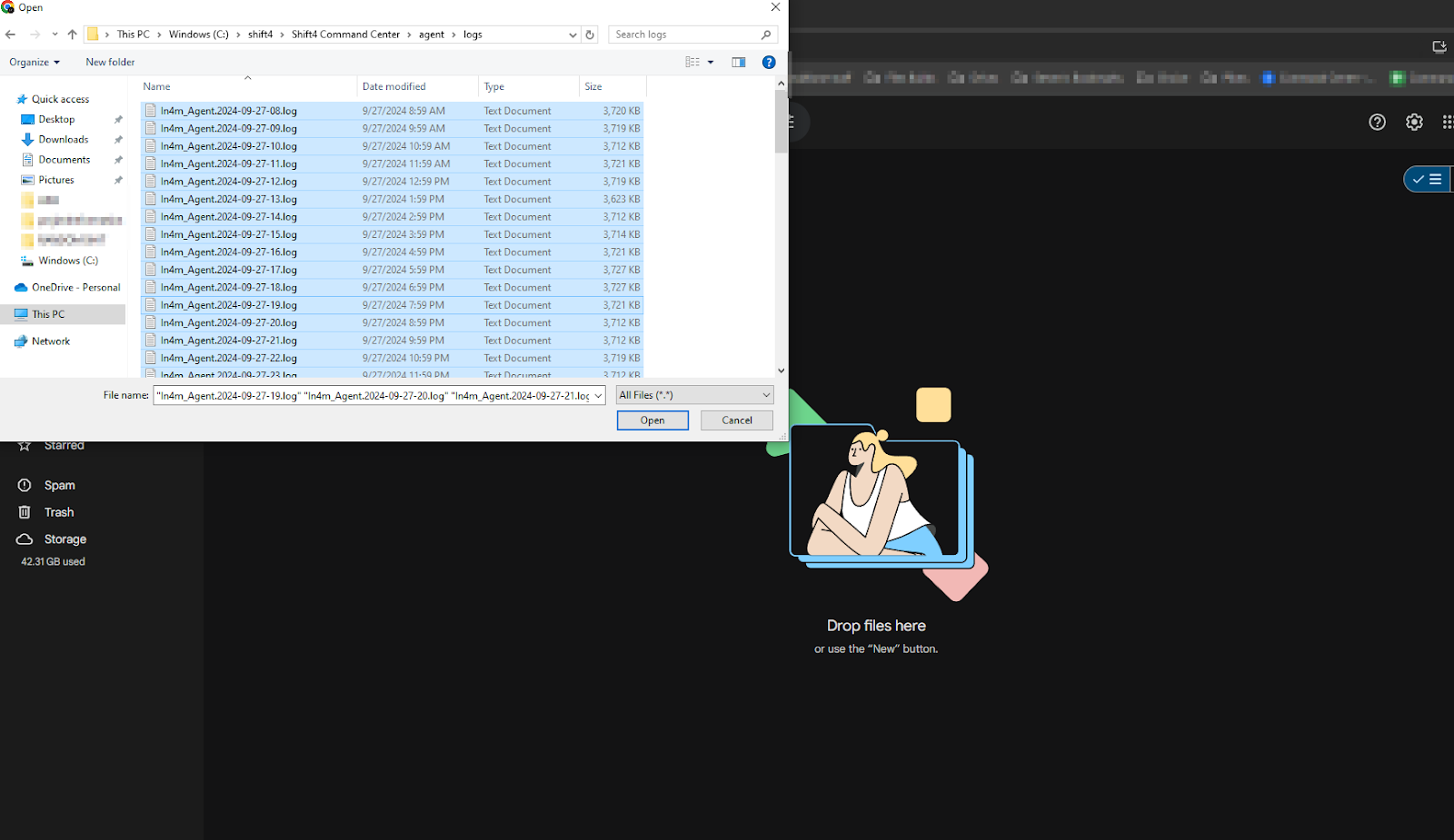 - In this folder, you will find various log files related to the agent. These files typically have timestamps in their names, making it easier to identify the logs generated during the issue.